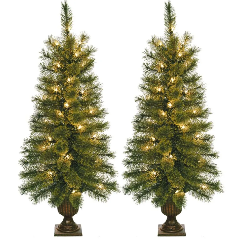 Sale Christmas Time 6.5′ White Pine Artificial Christmas Tree With 400 Multi-Color Lights