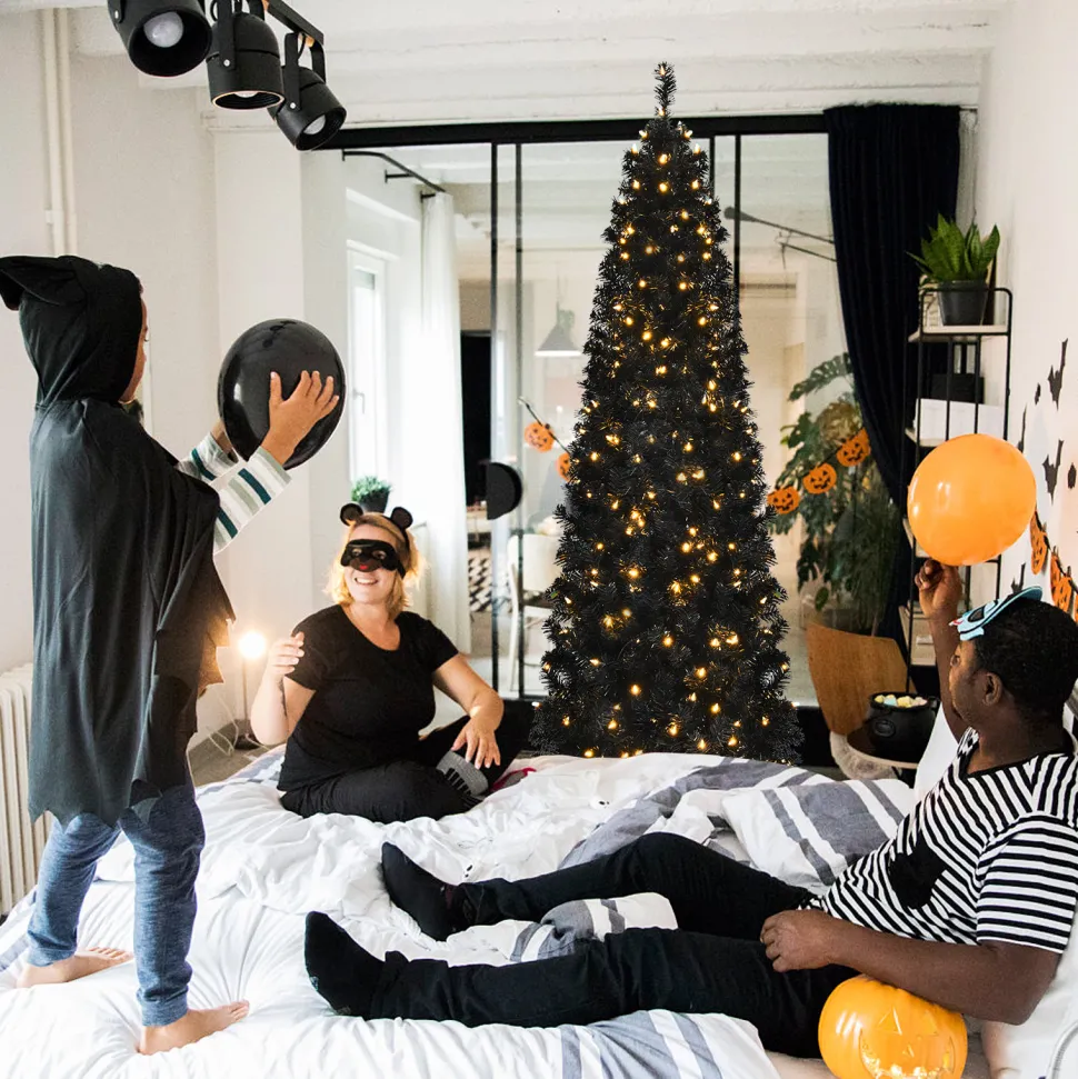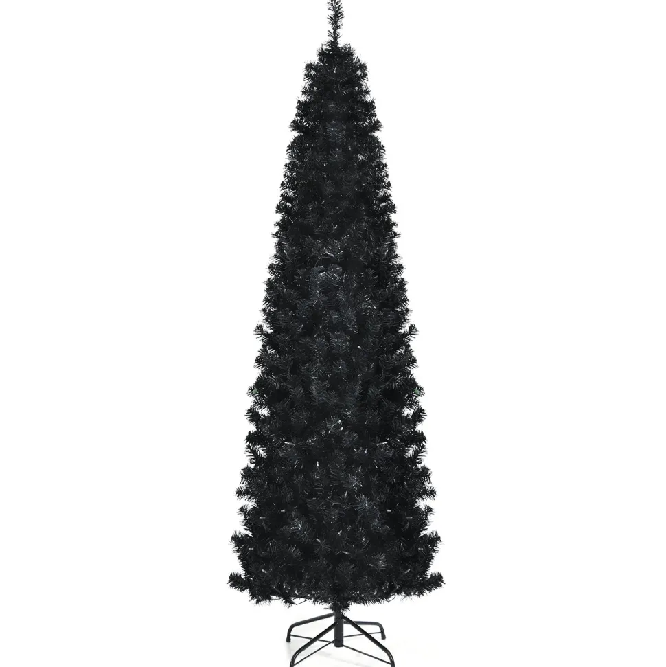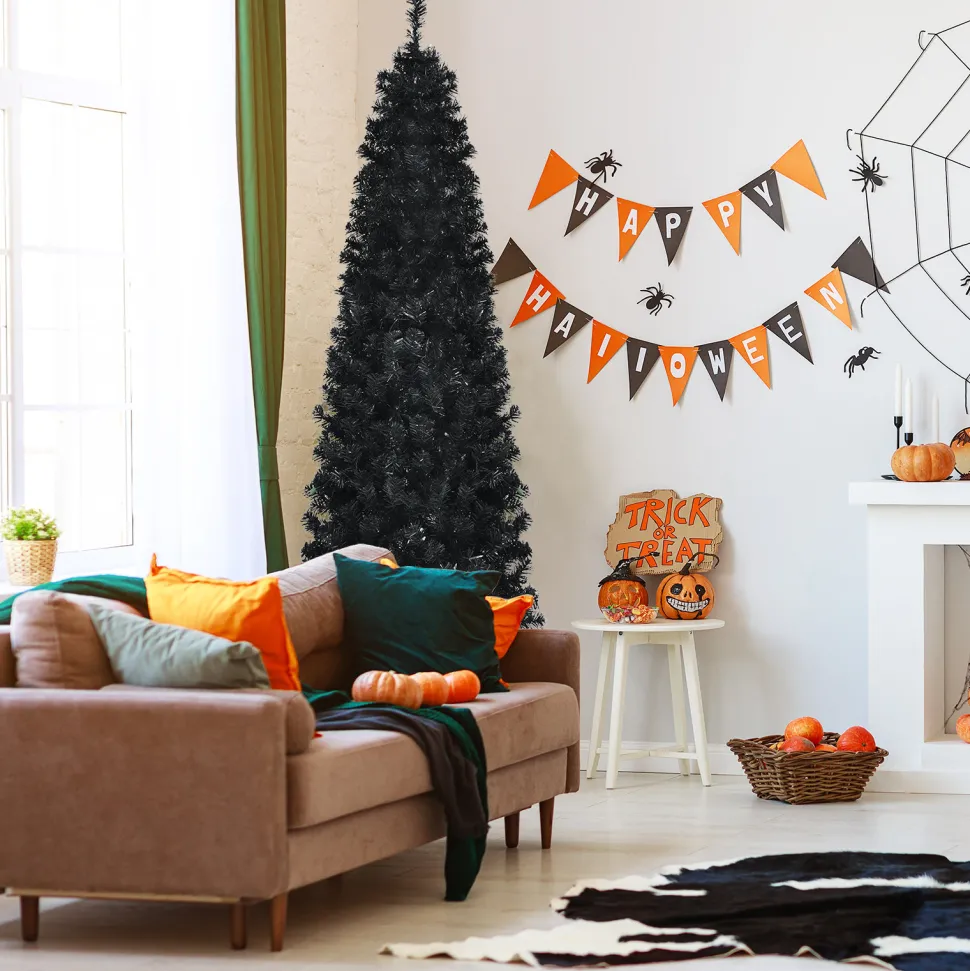 - 【Black Decoration Tree】This Slim Pencil Tree, Which Measures 7 Feet Tall, Is Designed Into A Special Black Color. Therefore, It’s Able To Match Different Party Themes According To The Ornaments Added By You. Such A Spectacular Artificial Tree Is Not Only Suitable For Christmas, But Also For Halloween Parties.