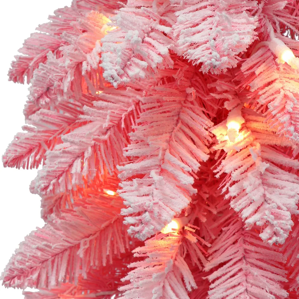 - 4 Foot Snow Flocked Christmas Tree: Features Elegant Snow-Dusted 139 Pink Pine Needle Tips That Stimulate A Realistic Feel To Deliver A Touch Of Snowy Ambiance Even If A White Christmas Is Not On The Forecast.
