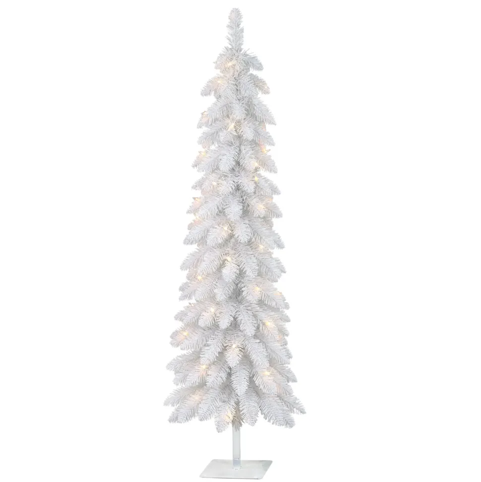 4 Ft Pre-Lit White Artificial Alpine Pencil Tree 136 Tips 50 Clear Lights