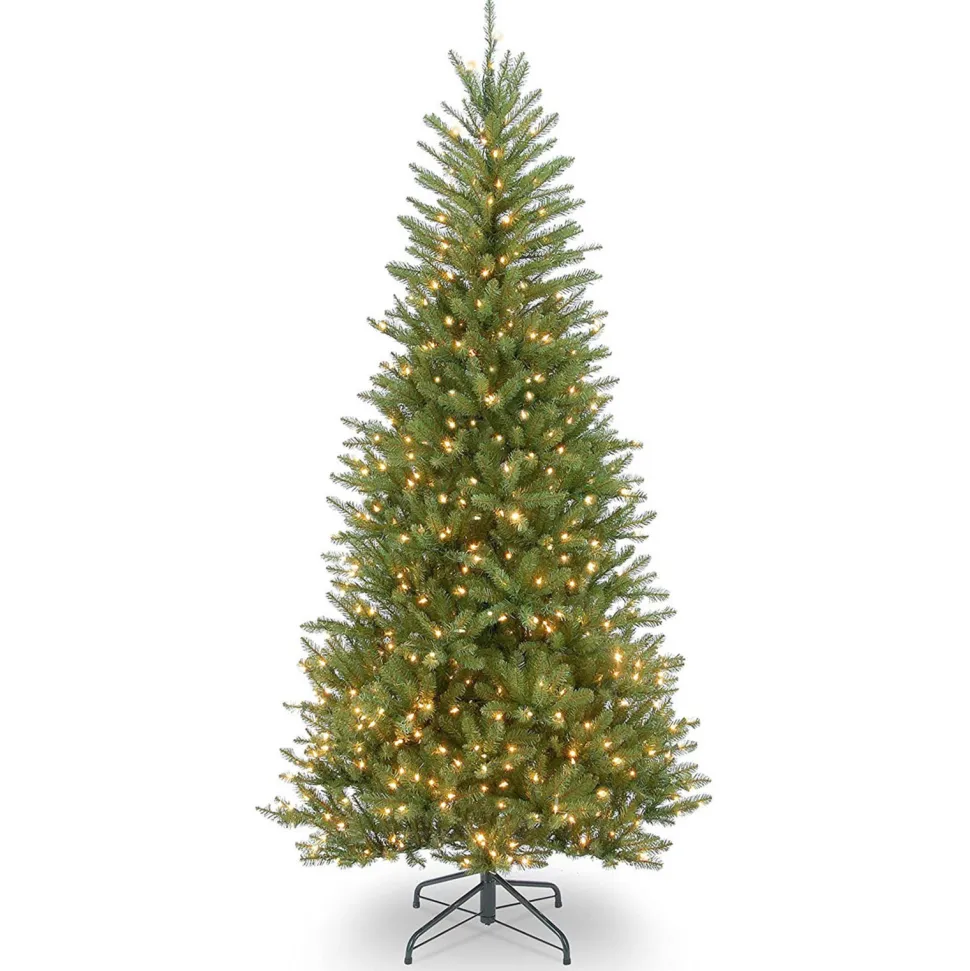 This Christmas Tree Is A Slim Profile Tree That Is A Great Choice For Display In Corners, Small Rooms, Or Areas With Limited Floor Space. It Is Pre-Strung With 500 Clear Lights That Remain Lit Even If A Bulb Burns Out. This Tree Features Hinged Branches For Ease Of Assembly. The Sturdy Folding Metal Tree Stand Is Included.