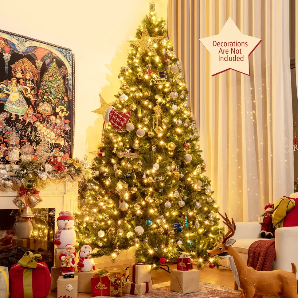 Are Your Looking For A Typical And Outstanding Decoration For Festival Celebration? Our Pre-Lit Christmas Tree Will Be An Ideal Choice. To Keep The Balance Of Romantic Vibe And Natural Scenes, This Verdant Christmas Tree With Warm Led Lights Showcase Excellent Lighting Show And Vibrant Natural Vividness At Home. There Are 8 Flash Modes For You To Choose By Controlling The Foot Pedal Switch. Thanks To The Power-On Pole Design, The Sections Need No Extra Electric Strings. And Hinged Branches Will Drop Automatically, So You Need To Fluff Tree Shape For Full-Bodied Appearance. In Addition, This 9Ft Christmas Tree Is Supported By Sturdy Metal Stand Stably And Uprightly. In A Word, This Luxuriant Artificial Christmas Tree Perfectly Matches With All Occasions For Residential And Commercial Use.
